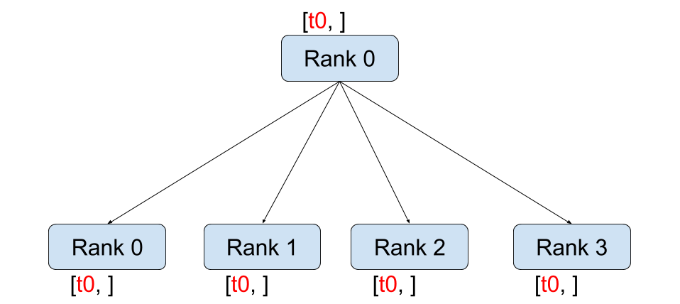 可以透過提供排名為 0 的程序的 IP 地址和一個可達的埠號來實現透過 TCP 進行初始化。在這裡,所有工作程序都將能夠連線到排名為 0 的程序,並交換有關如何相互訪問的資訊。