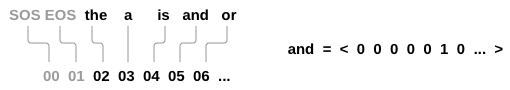 與字元級 RNN 教程中使用的字元編碼類似,我們將每種語言中的每個單詞表示為一個獨熱向量,即一個除了一個 1(在單詞的索引處)之外全為零的巨大向量。與語言中可能存在的幾十個字元相比,單詞的數量要多得多,因此編碼向量也大得多。然而,我們將稍微偷點懶,將資料截斷,每種語言只使用幾千個單詞。
